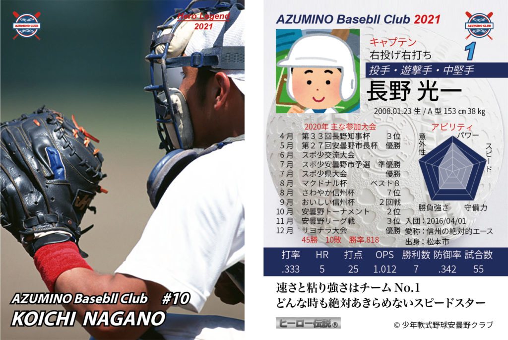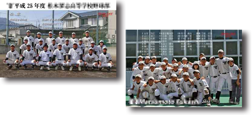 試合や練習などで撮影した写真に、チーム名や選手名、チーム戦績、個人成績などを加えてデザインした世界にひとつだけのメモリアルカードです。