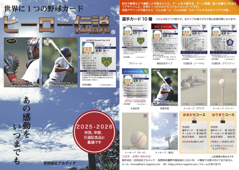 ヒーロー伝説は卒団記念品、引退記念品にぴったりな贈り物